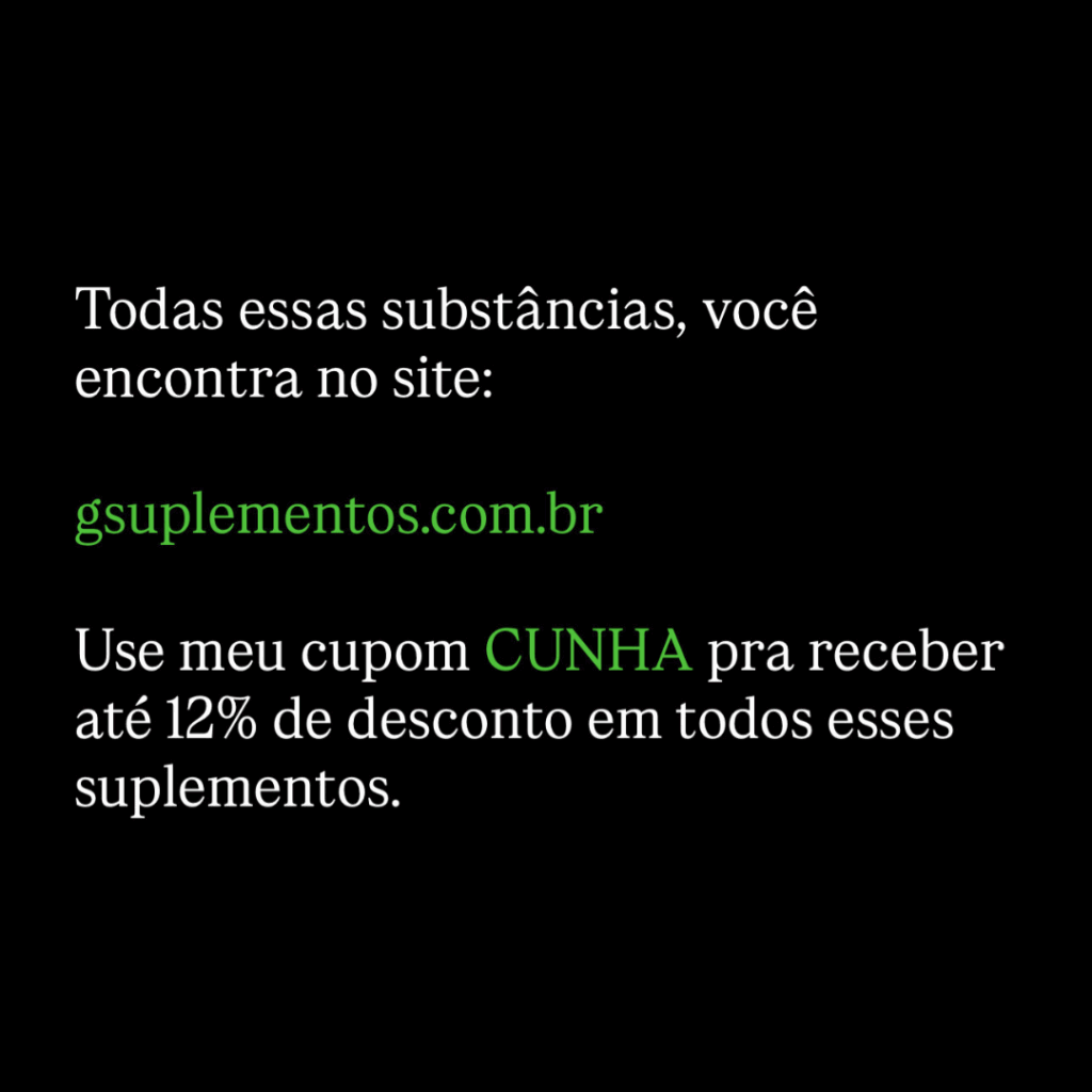 Use meu cupom CUNHA pra receber até 12% de desconto em todos esses suplementos.